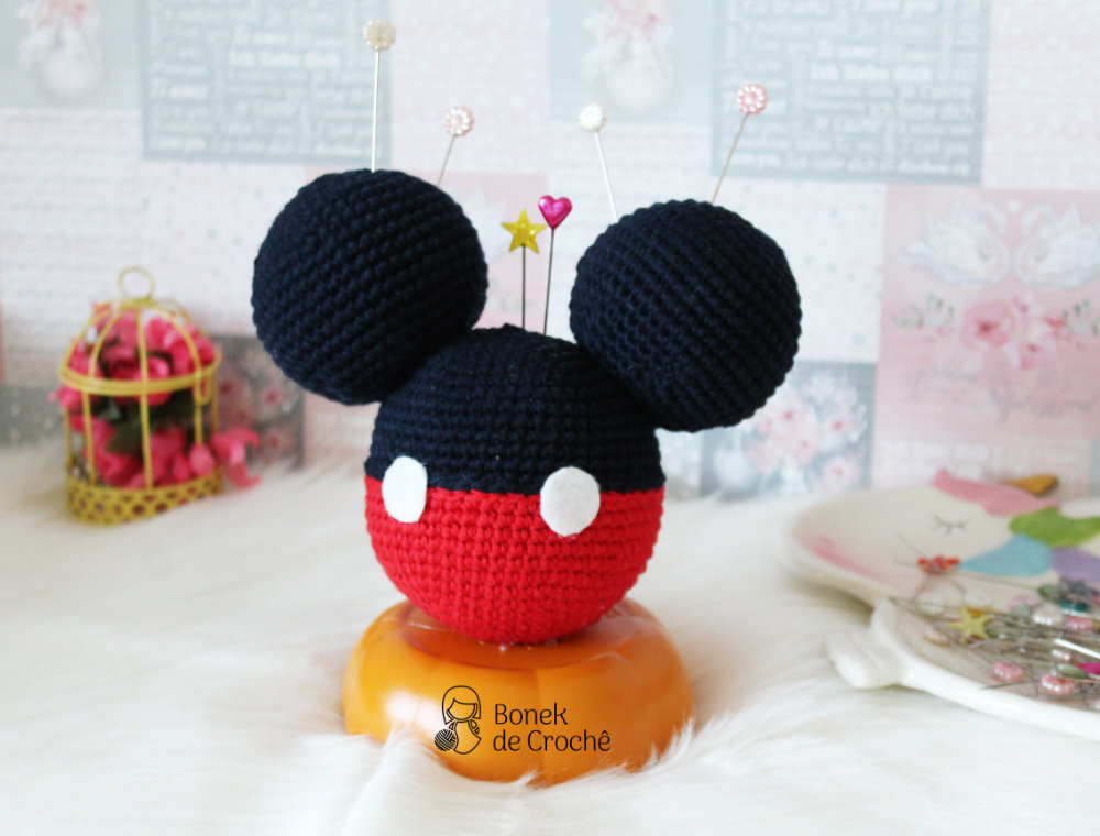 De vez em quando preciso de alfinetes para prender as partes das minhas peças, daí resolvi deixar a minha mesa de trabalho mais divertida e fiz esse porta alfinetes baseado no #mickeymouse