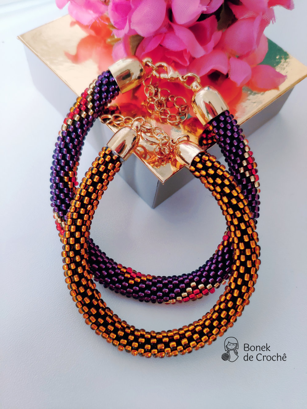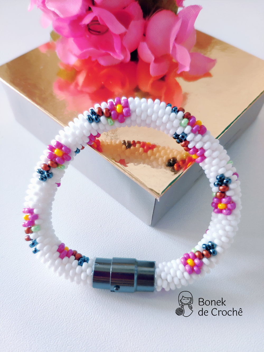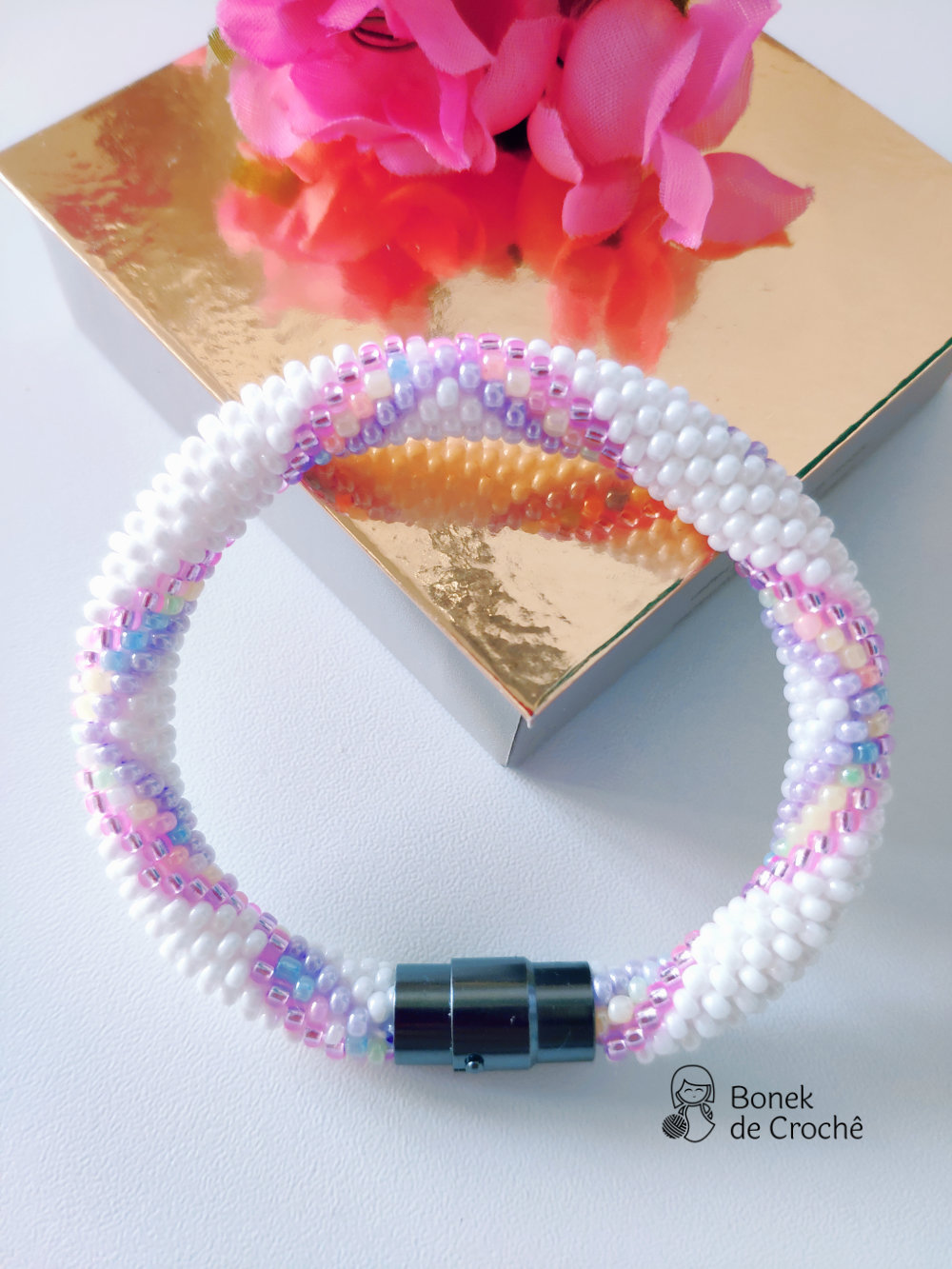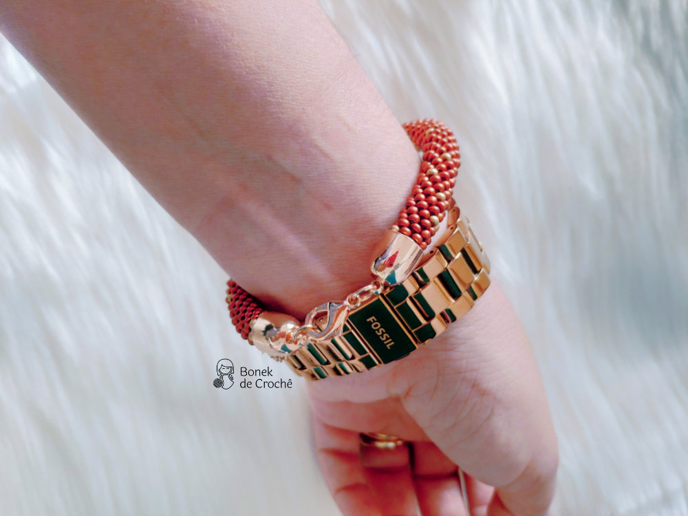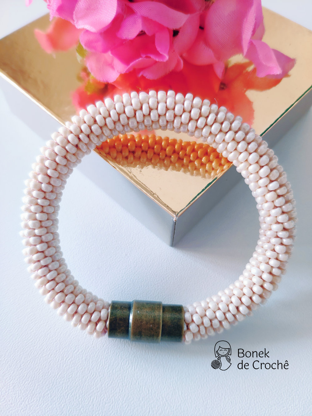 Cada pequena pérola foi cuidadosamente tecida com crochê e muito amor. Geralmente cada bracelete tem mais de 600 rocailles pequenos.