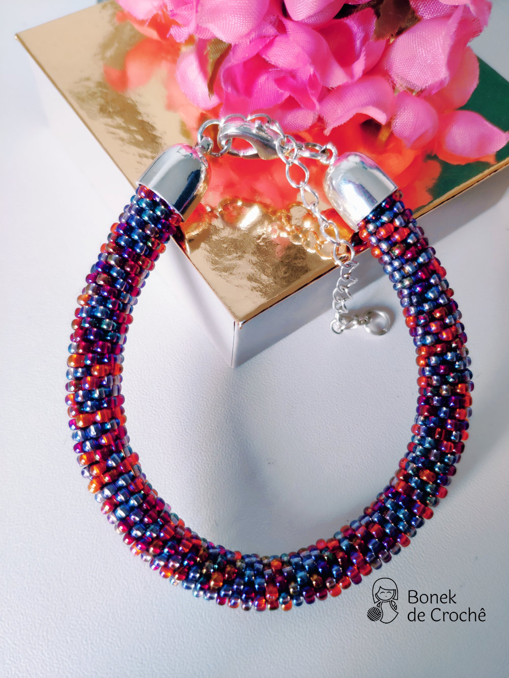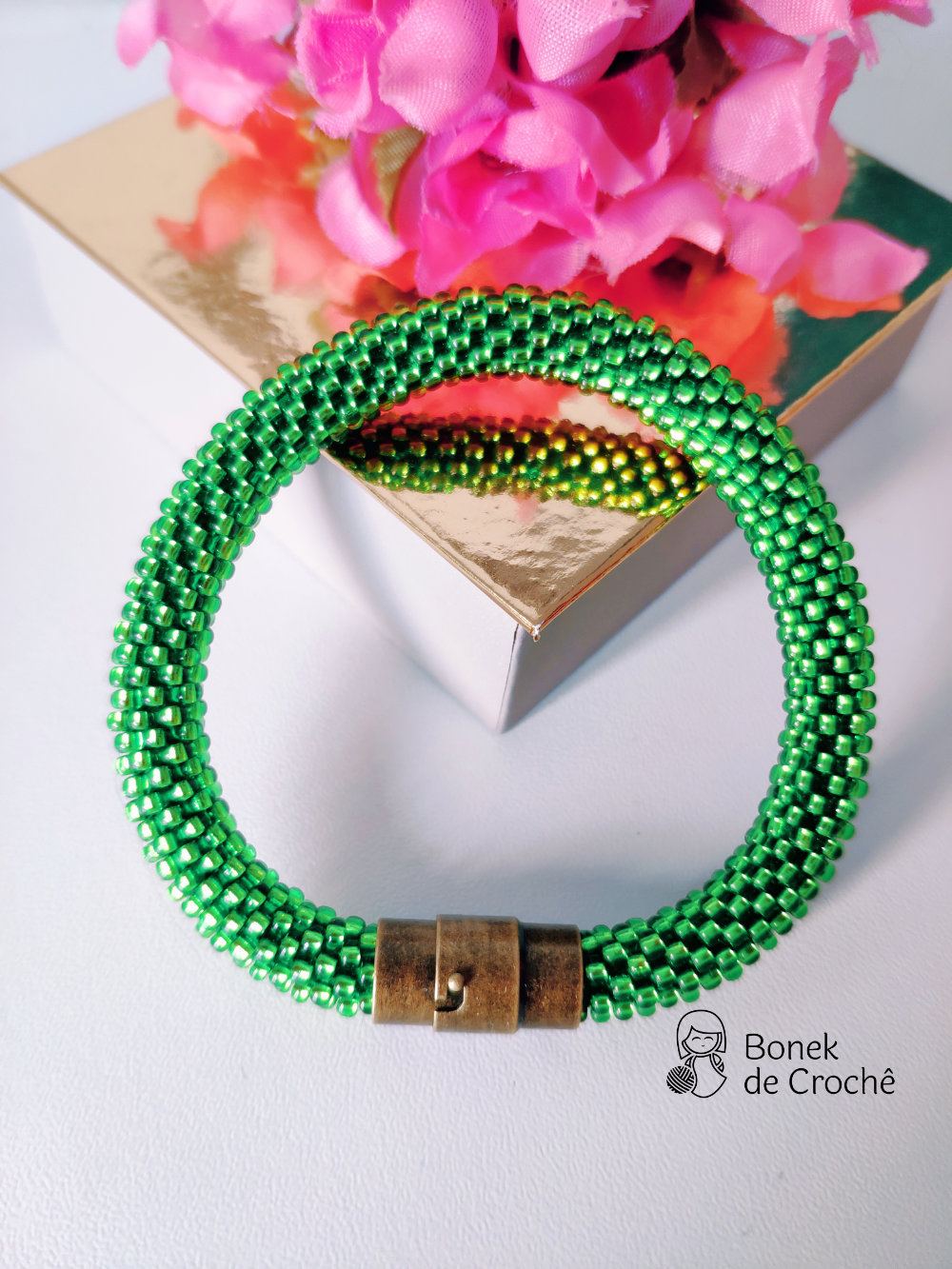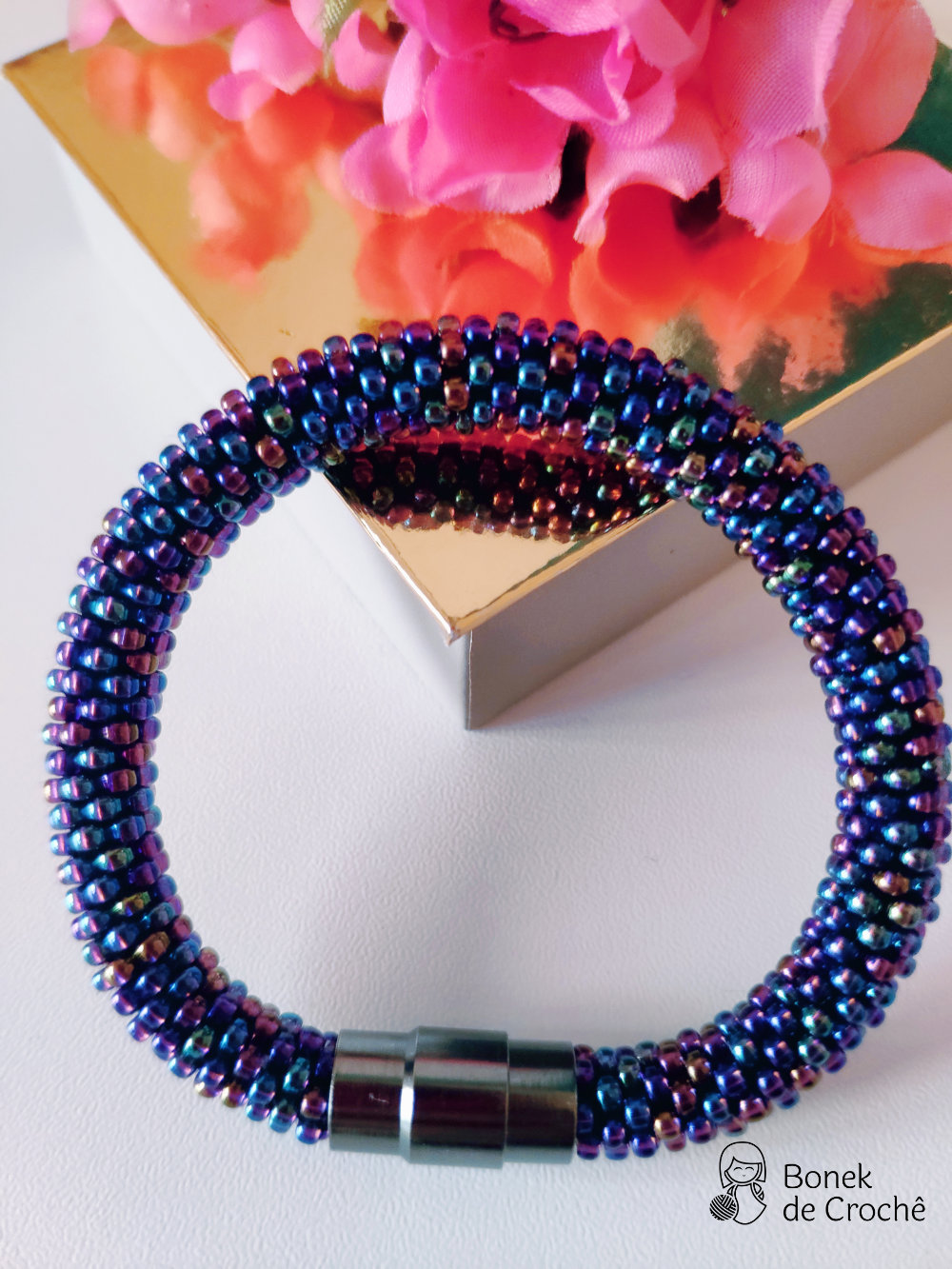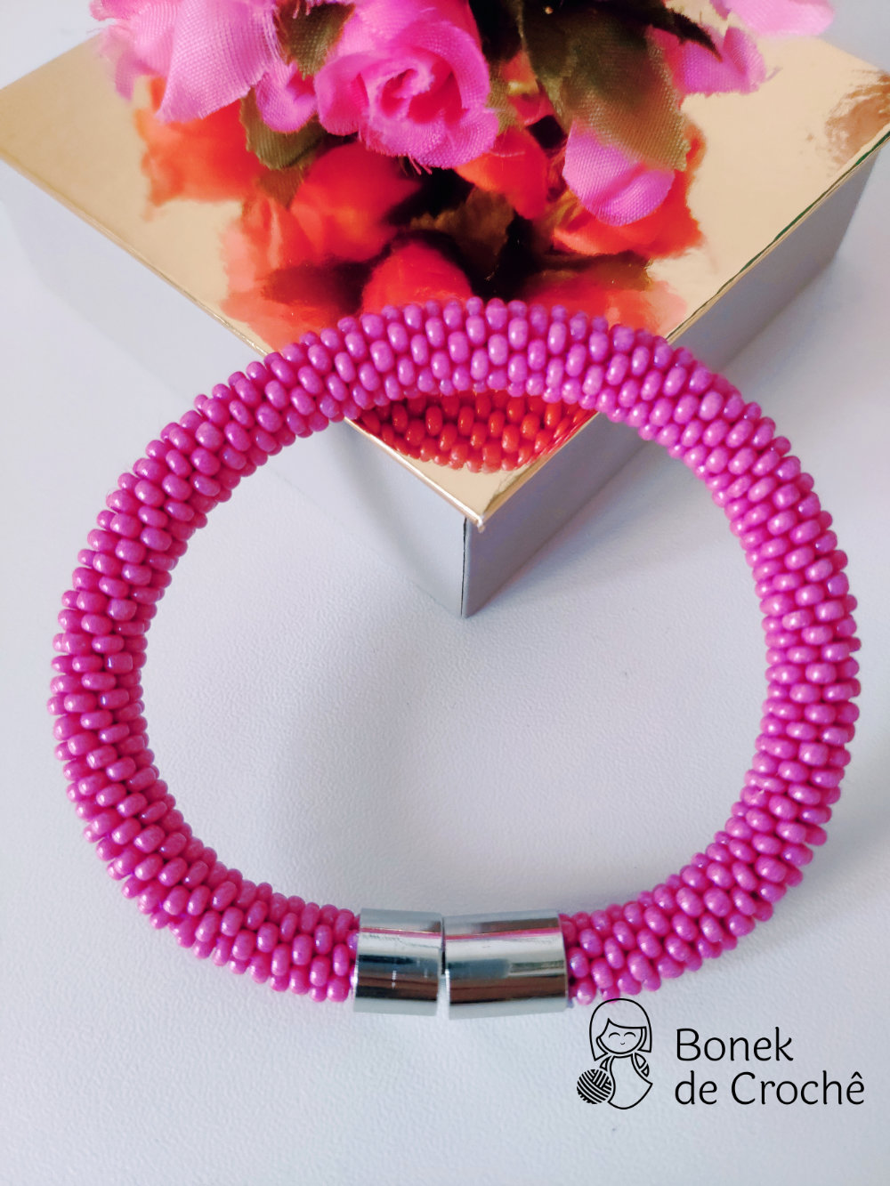 Cada pequena pérola foi cuidadosamente tecida com crochê e muito amor. Geralmente cada bracelete tem mais de 600 rocailles pequenos.