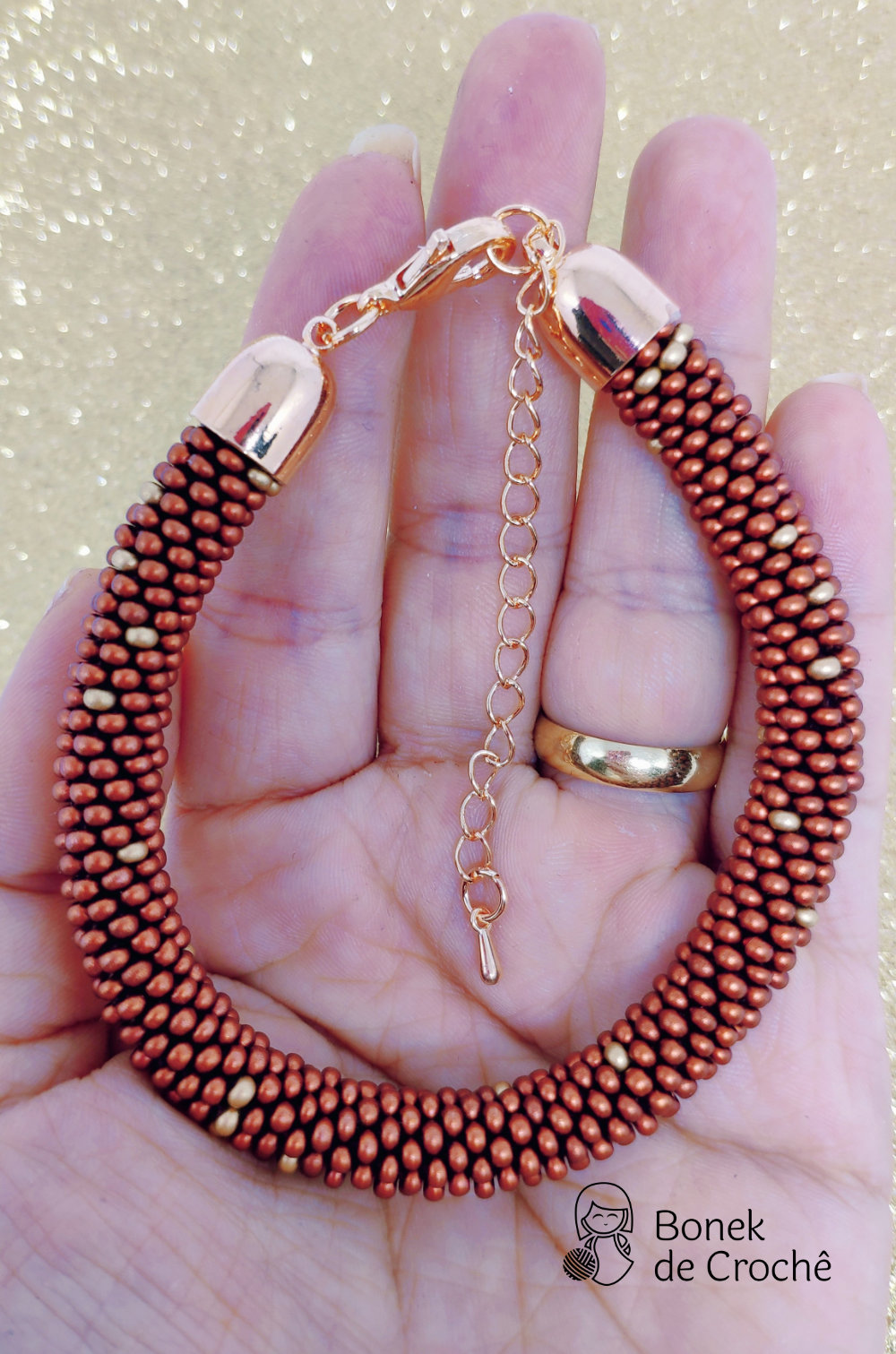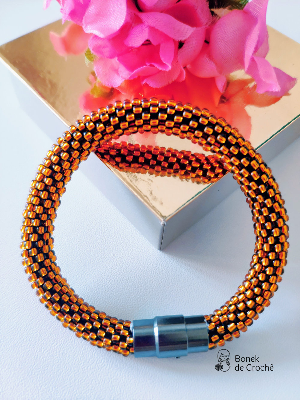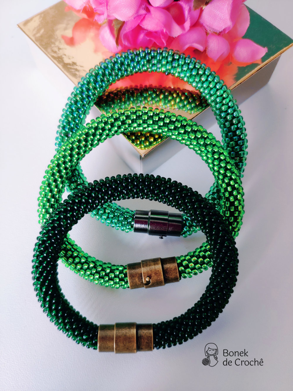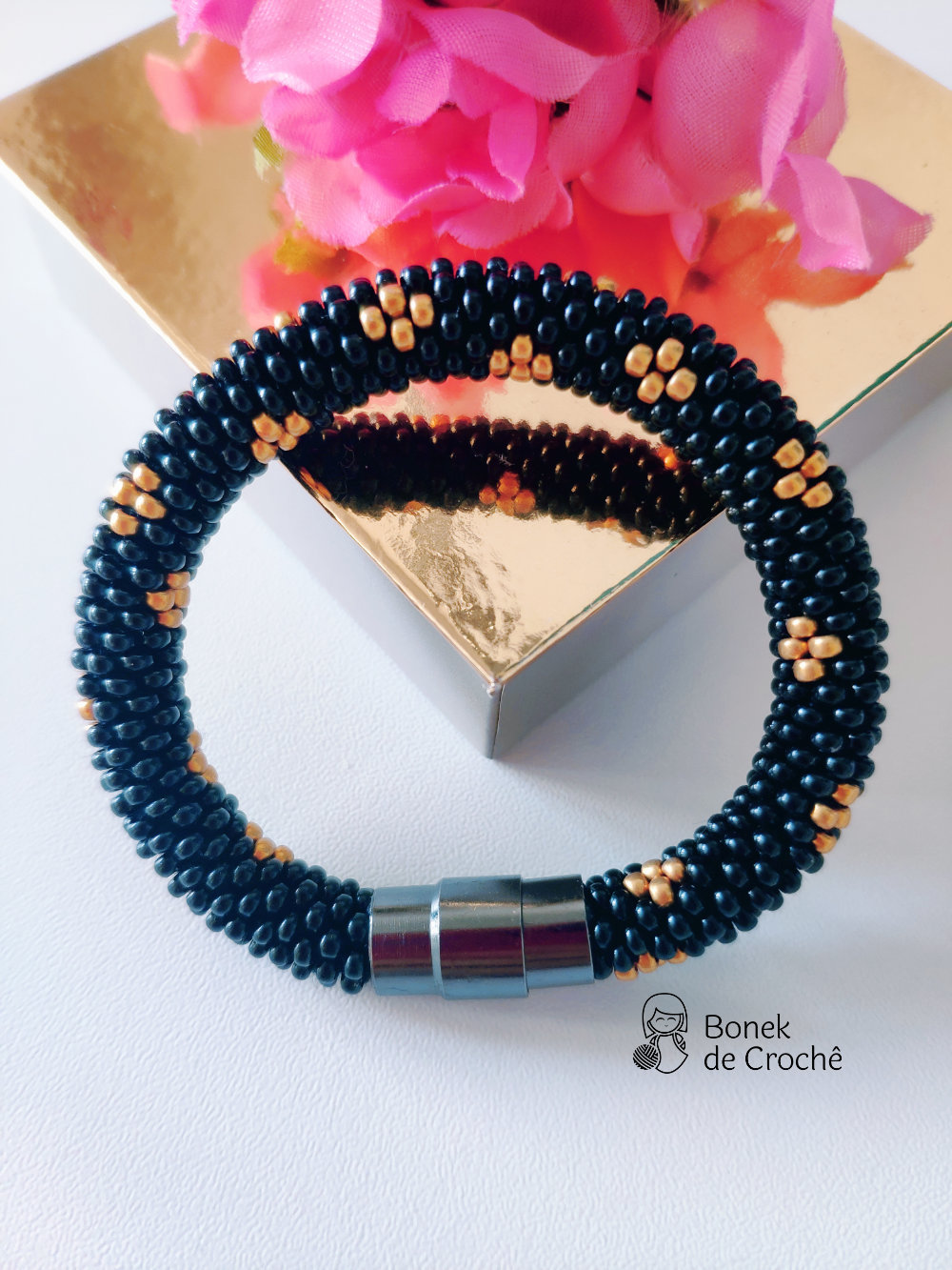 Cada pequena pérola foi cuidadosamente tecida com crochê e muito amor. Geralmente cada bracelete tem mais de 600 rocailles pequenos.
