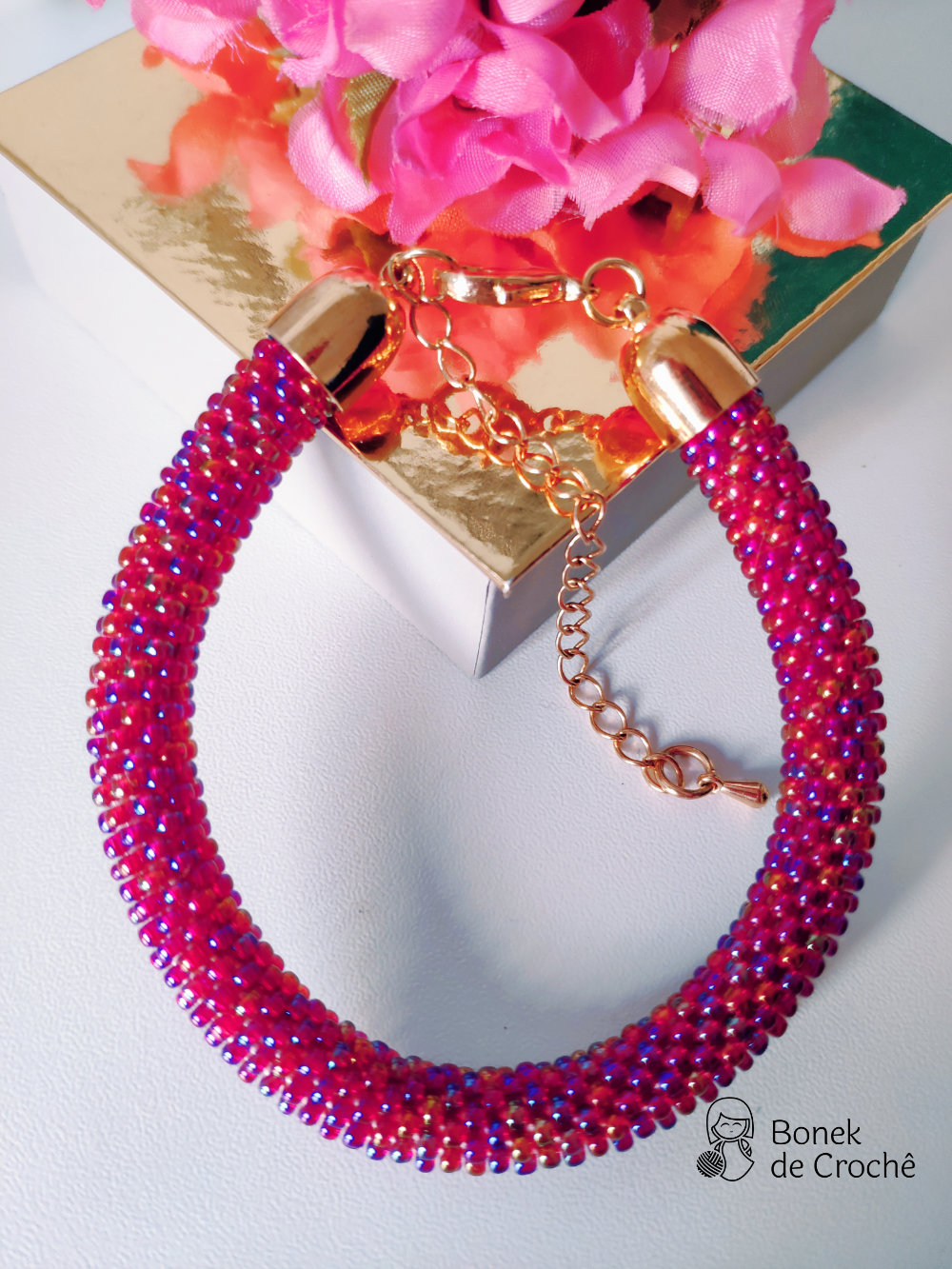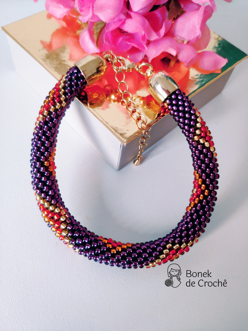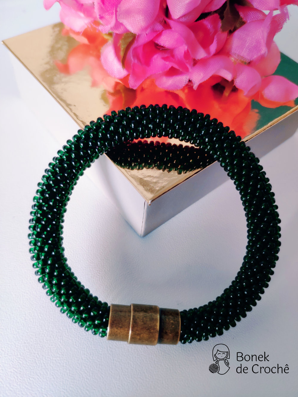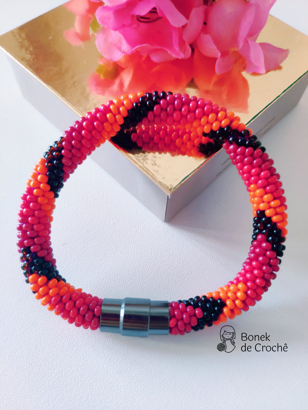 Cada pequena pérola foi cuidadosamente tecida com crochê e muito amor. Geralmente cada bracelete tem mais de 600 rocailles pequenos.