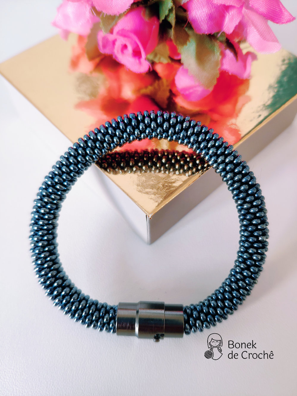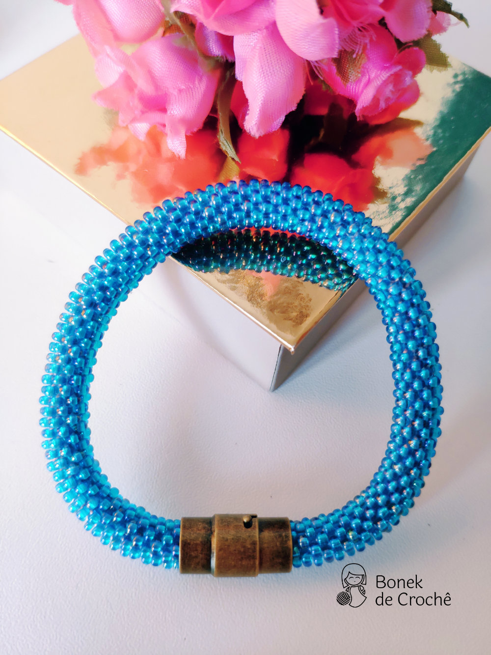 Cada pequena pérola foi cuidadosamente tecida com crochê e muito amor. Geralmente cada bracelete tem mais de 600 rocailles pequenos.
